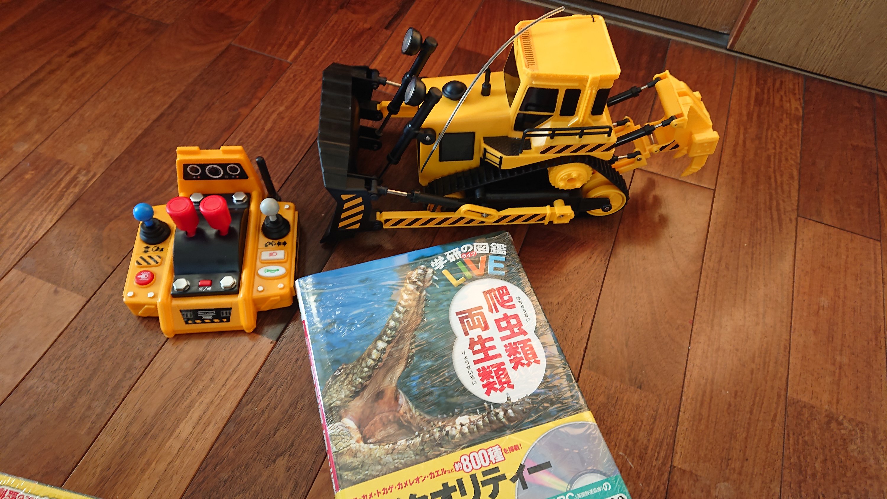 次男は、ブルドーザーのラジコンと爬虫類両生類の図鑑です。